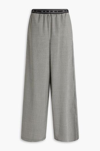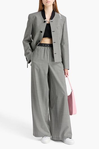 Crystal-embellished herringbone wool-flannel straight-leg pants