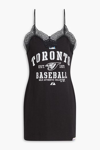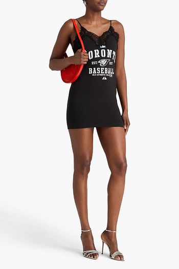 Lace-trimmed printed cotton-jersey mini slip dress