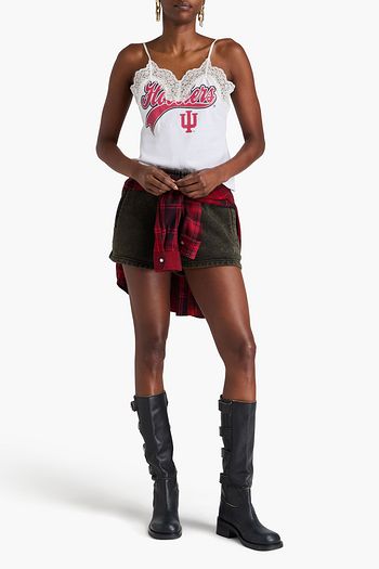 Lace-trimmed printed cotton-jersey camisole