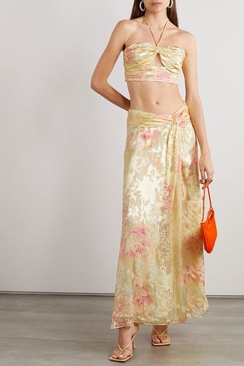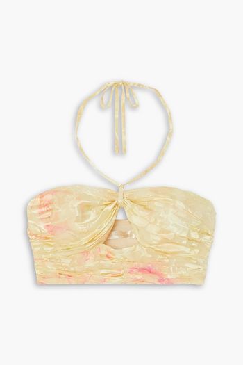 Balton cropped cutout printed satin-jacquard top