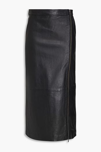 Zip-detailed textured-leather skirt