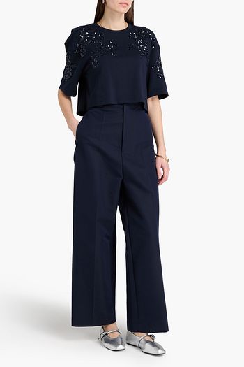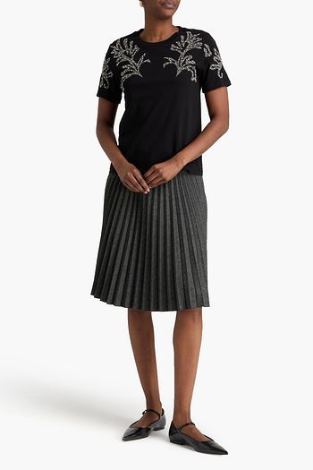 One-shoulder bead-embellished ribbed-knit bodysuit