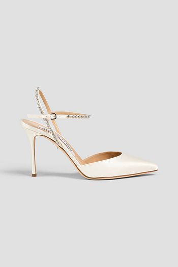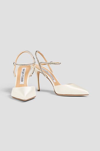 Crystal-embellished satin pumps