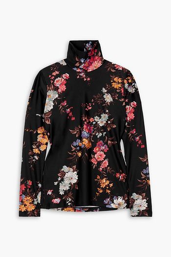 Floral-print stretch turtleneck top