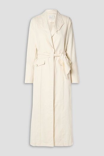 Draped satin-crepe trench coat