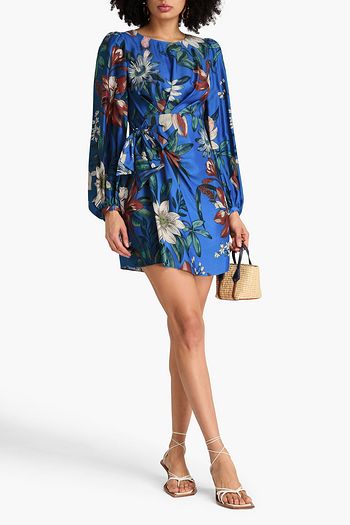 Ruffled floral-print stretch-cotton poplin mini shirt dress