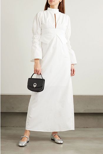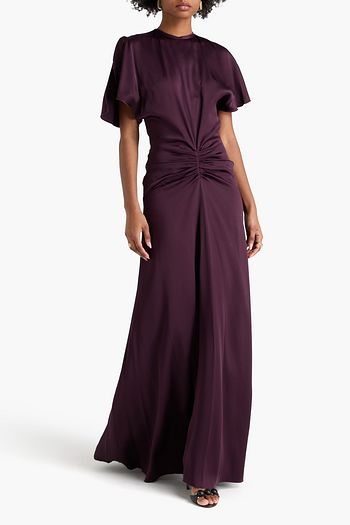 Adalina cold-shoulder embellished satin-crepe maxi dress