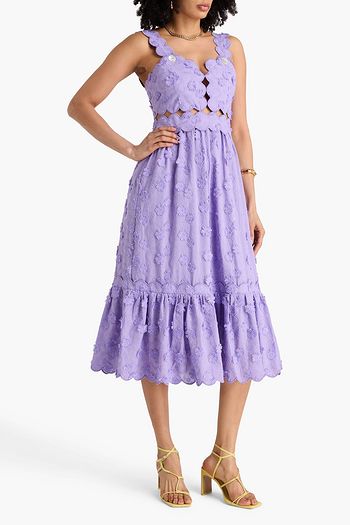 Pussy-bow tiered floral-print silk-chiffon midi dress