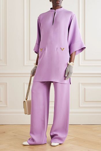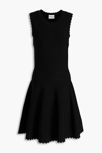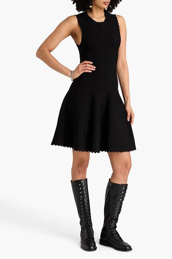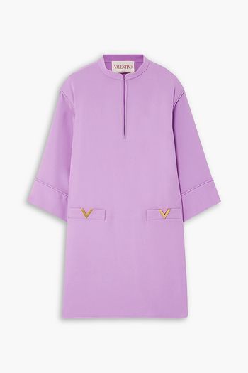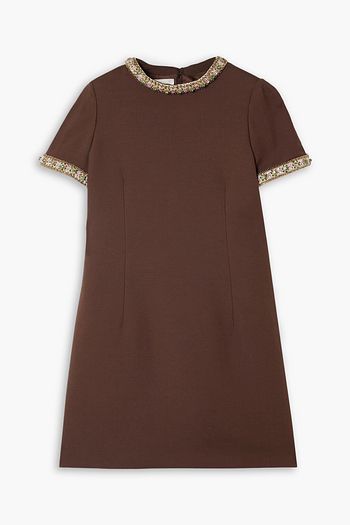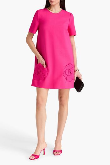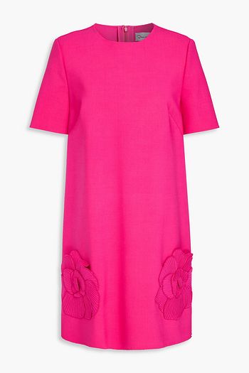 Ruffled velvet-trimmed wool and silk-blend crepe mini dress