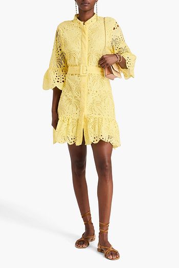 Winona tiered embroidered cotton-blend mini shirt dress