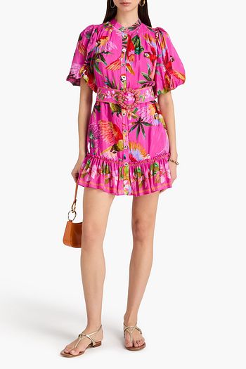 Belted floral-print cotton mini dress