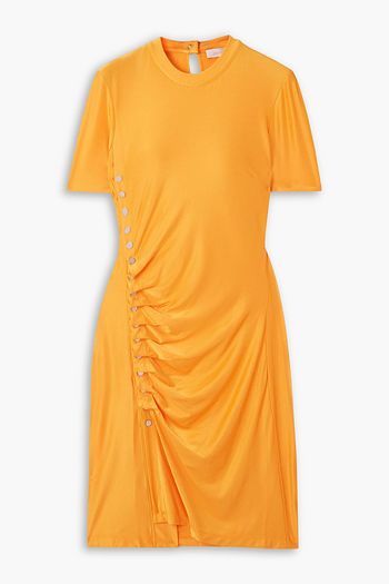 Gathered printed silk-twill mini dress