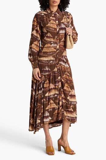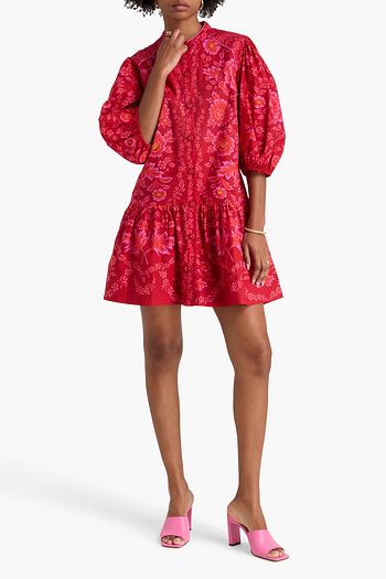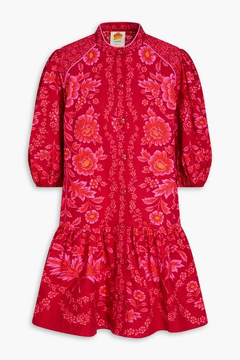 Ruffled floral-print stretch-cotton poplin mini shirt dress