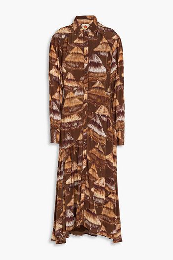 Crystal-embellished printed organic cotton-poplin shirt dress