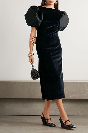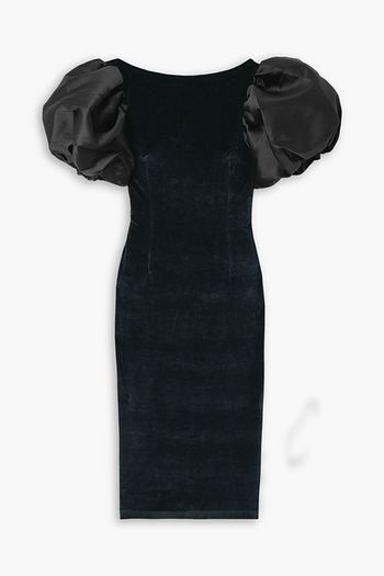 Suzanne faille-trimmed cotton-blend velvet midi dress