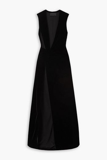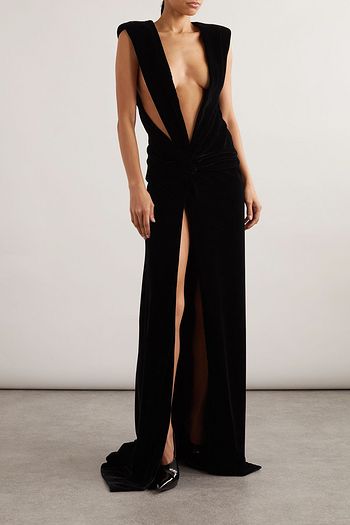 Cutout gathered crystal-embellished velvet maxi dress