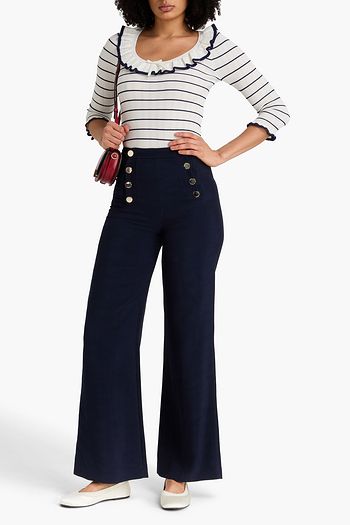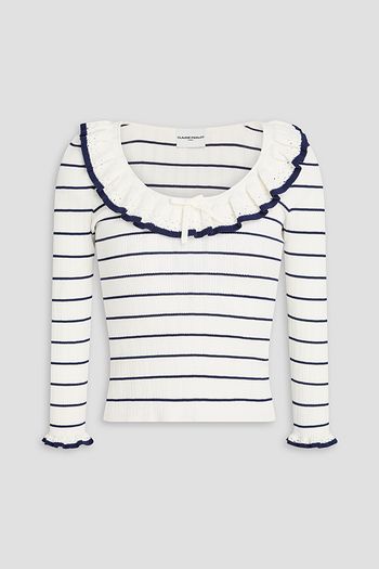 Embellished striped ribbed cotton sweater