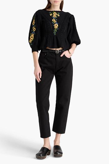 Floral-print pointelle-knit cardigan