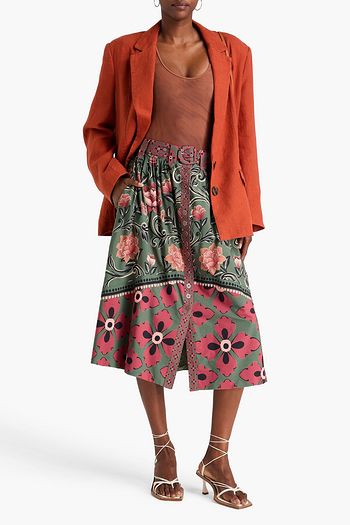 Seventy printed cotton-blend voile midi skirt