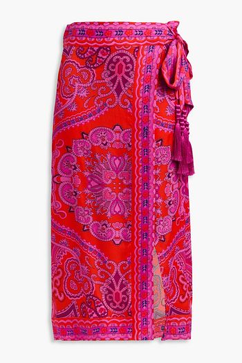 Belted printed cotton and silk-blend voile midi skirt