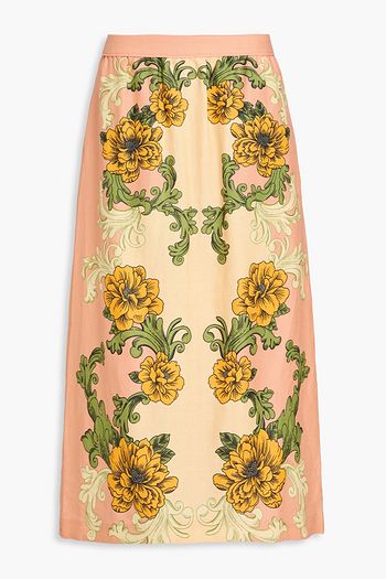 Floral-print silk-georgette midi skirt