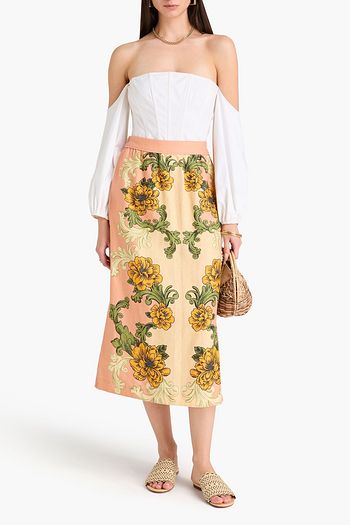 Pleated floral-print linen-blend maxi skirt