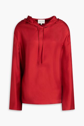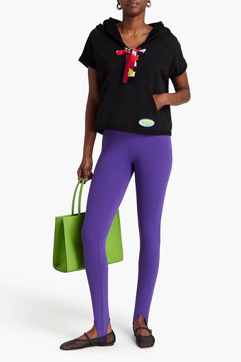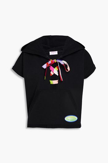 Logo-print corded lace-paneled French cotton-terry hoodie