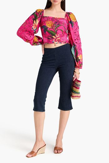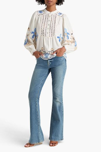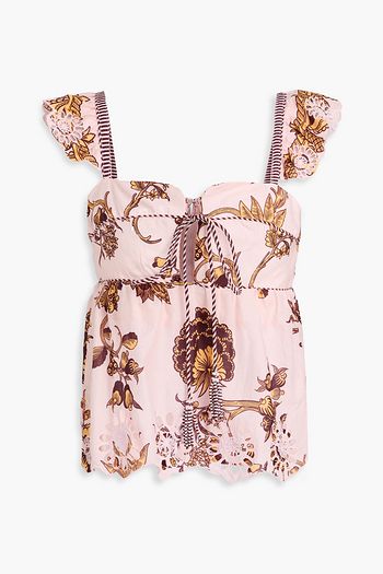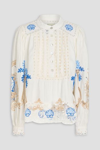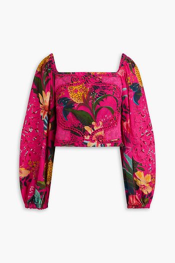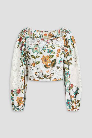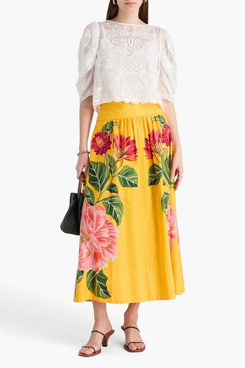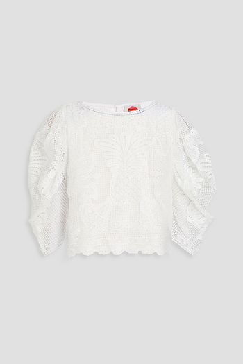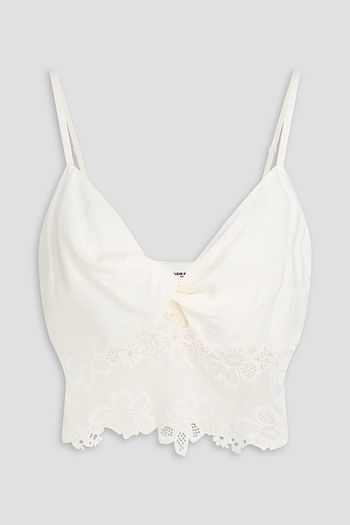 Broderie anglaise-trimmed cropped checked cotton-poplin top