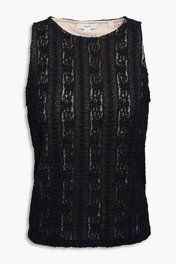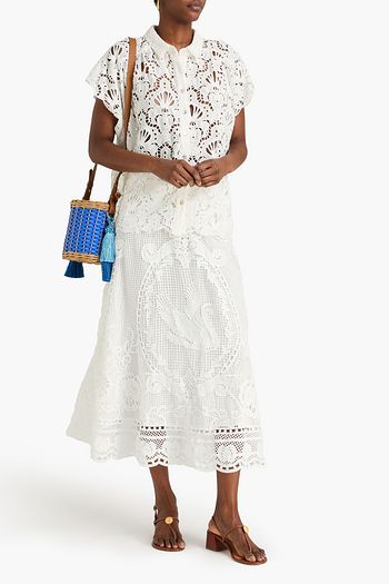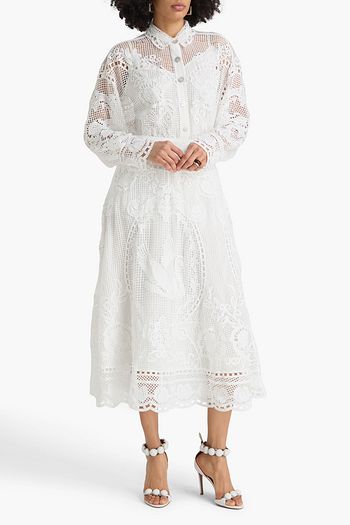 Logo-print corded lace-paneled French cotton-terry hoodie