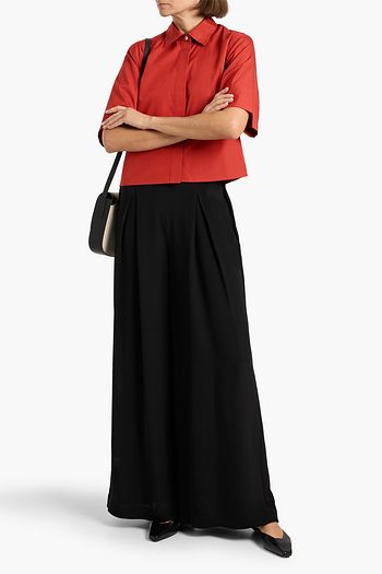 Cropped cotton-blend poplin shirt