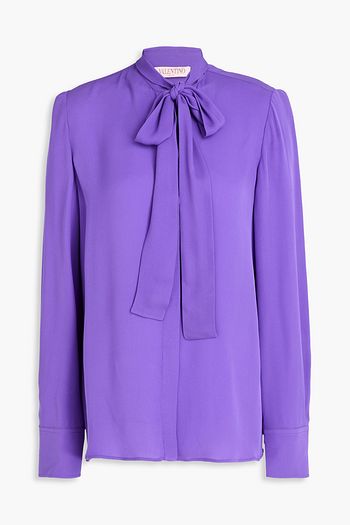 Pussy-bow washed-silk shirt