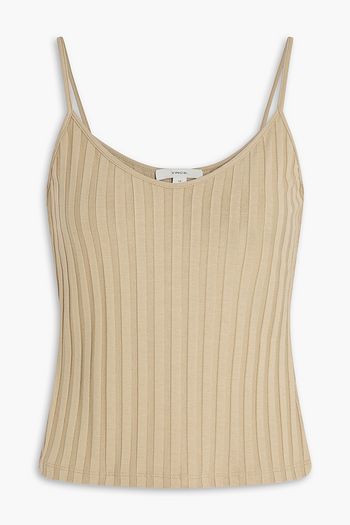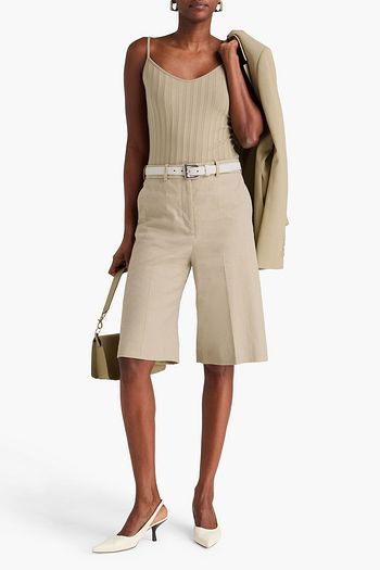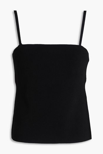 Cropped appliquéd ribbed cotton and merino wool-blend tank