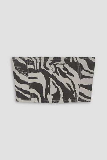 Zebra-print strapless cropped organic denim top