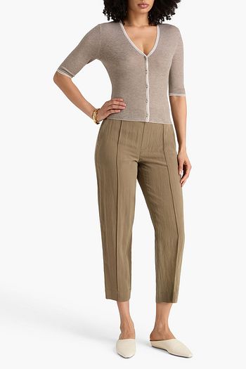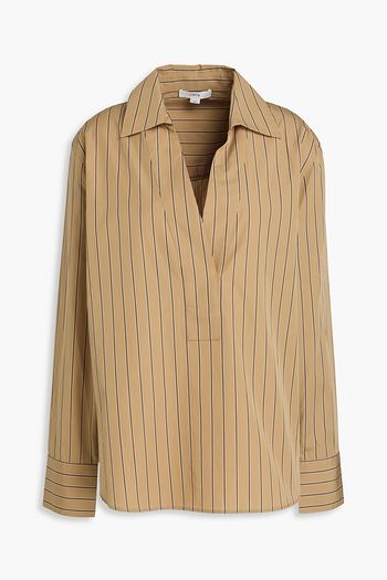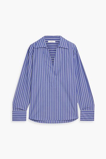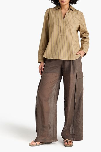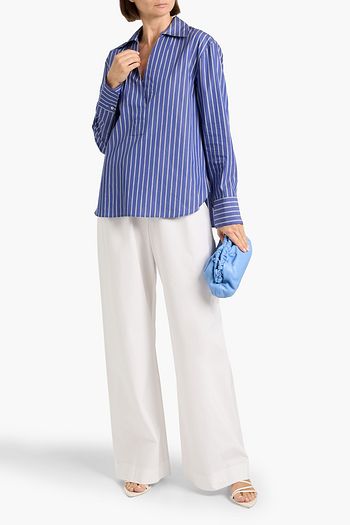 Carlo cropped pussy-bow striped cotton-poplin shirt