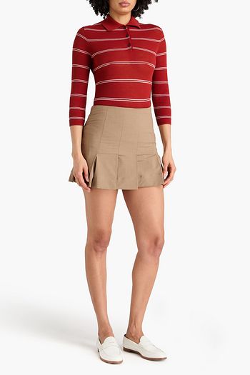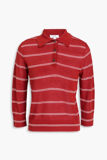 Striped intarsia-knit cotton polo sweater