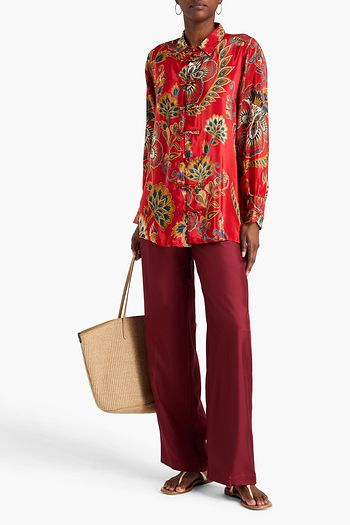 Floral-print silk crepe de chine shirt