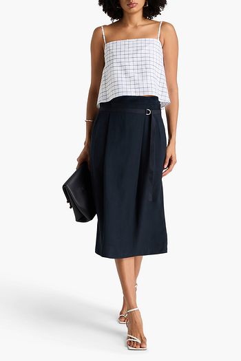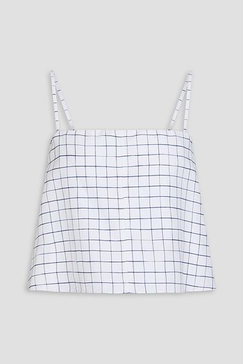 Cropped printed linen-blend top