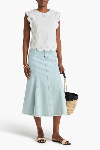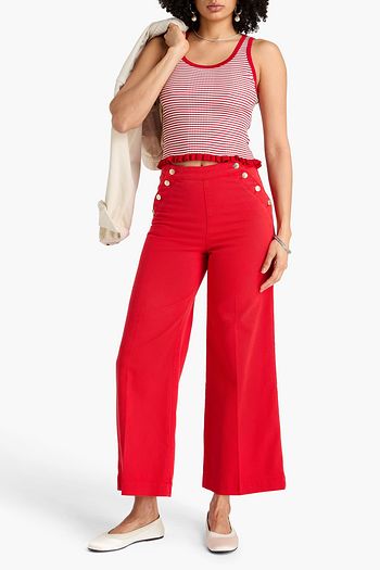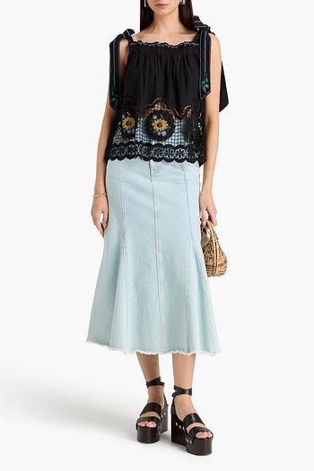 Cropped embroidered cotton-blend top