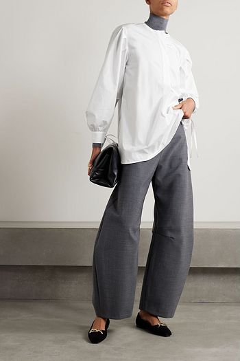 Cropped cotton-blend poplin shirt
