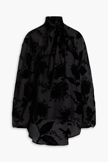 Pussy-bow washed-silk shirt