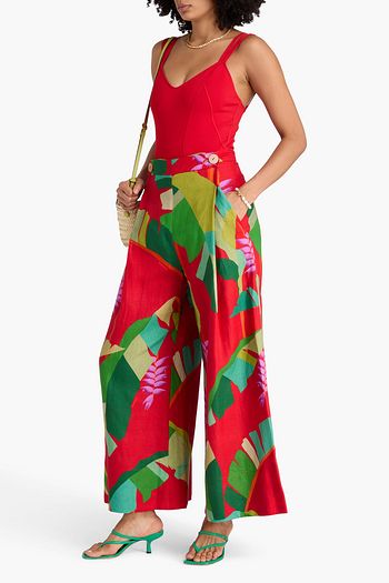 Printed linen wide-leg pants