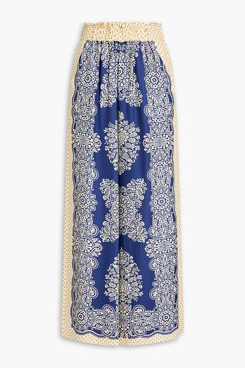 Printed silk-twill wide-leg pants