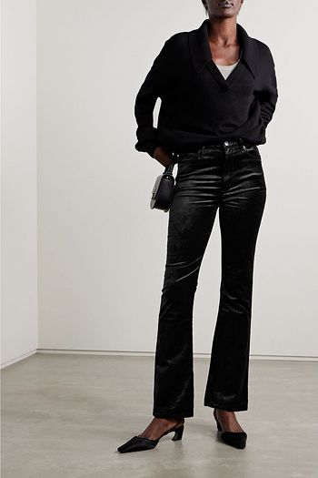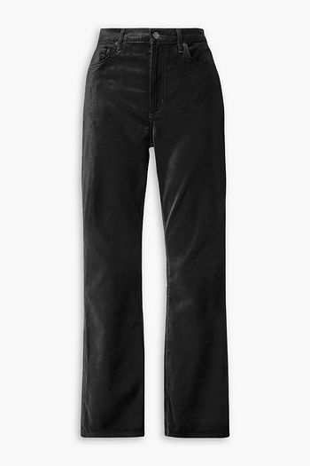 Journee velvet-trimmed sequined crepe straight-leg pants