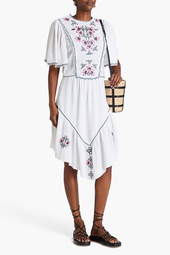 Floral-appliquéd jersey midi dress