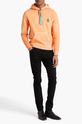 Stride acid-wash French cotton-blend terry zip-up hoodie