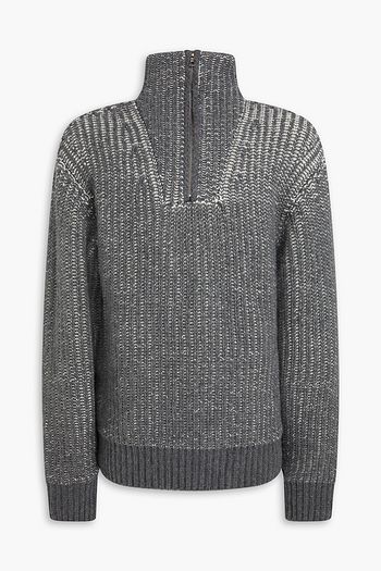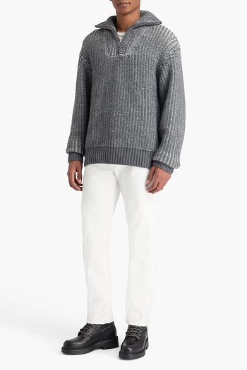 Jacquard-knit wool, cotton and cashmere-blend half-zip sweater