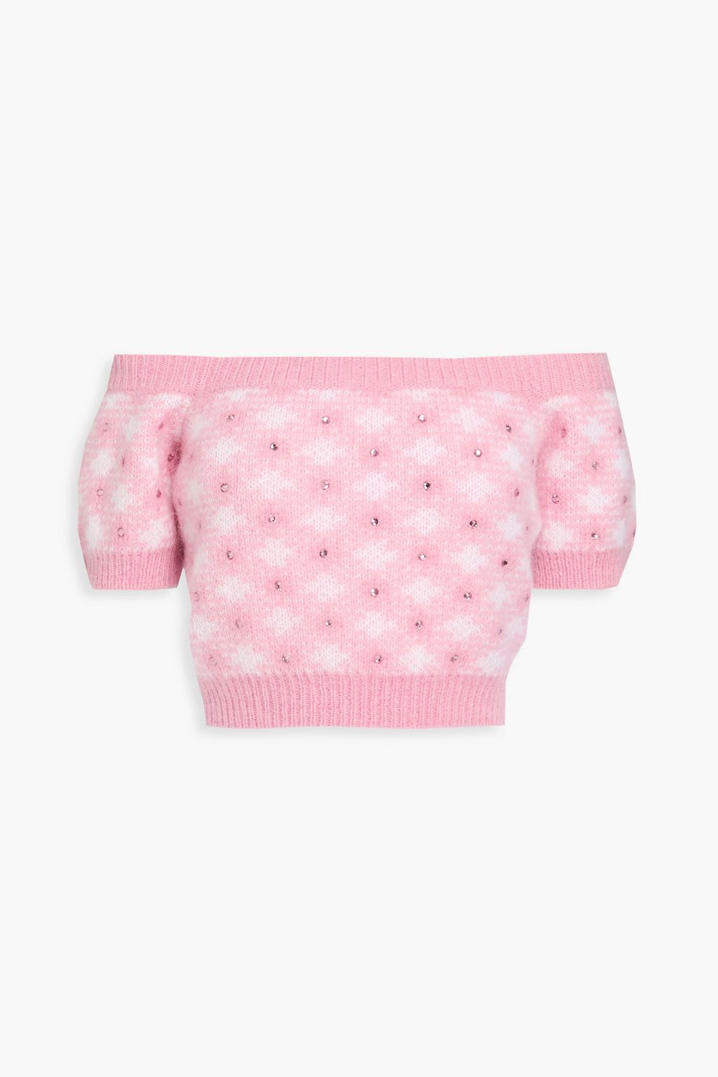 ALESSANDRA RICH Off-the-shoulder cropped jacquard-knit mohair-blend top