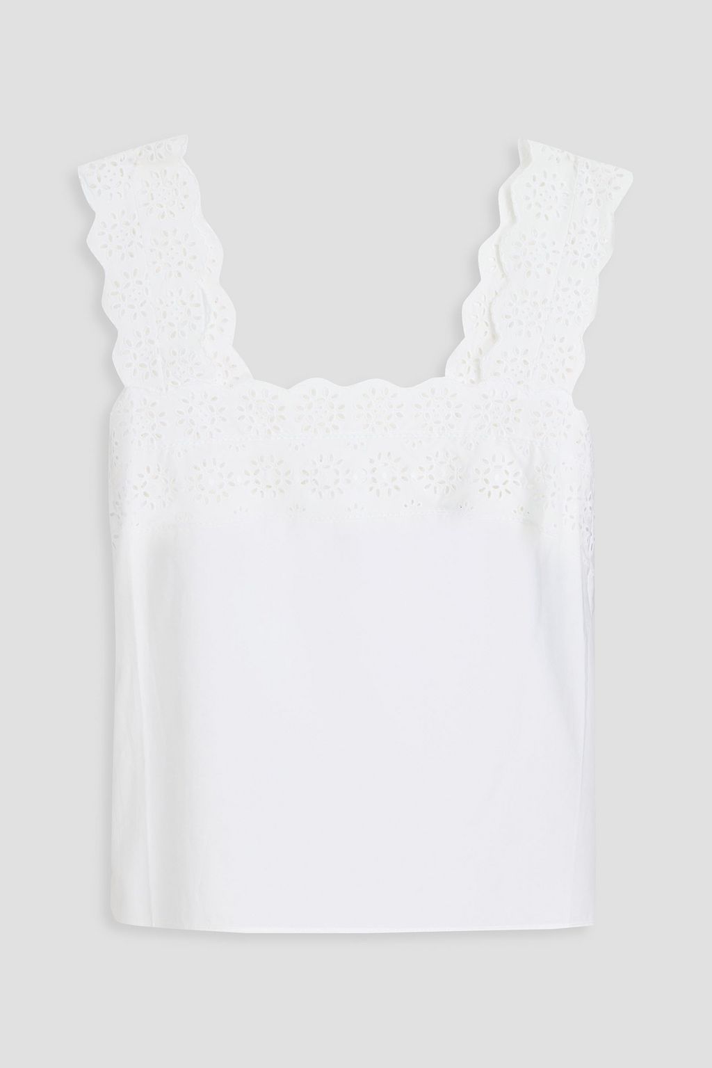 FRAME Broderie anglaise-trimmed cotton-poplin top