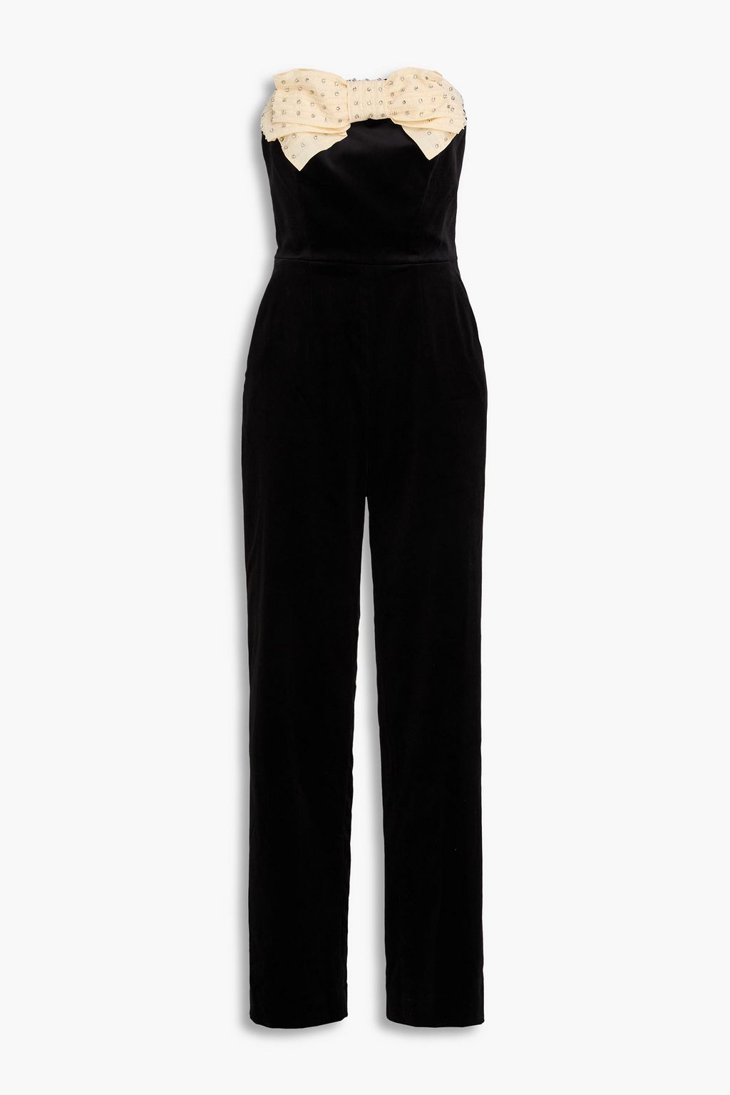 SALONI Sabine strapless bow-detailed cotton-blend velvet jumpsuit