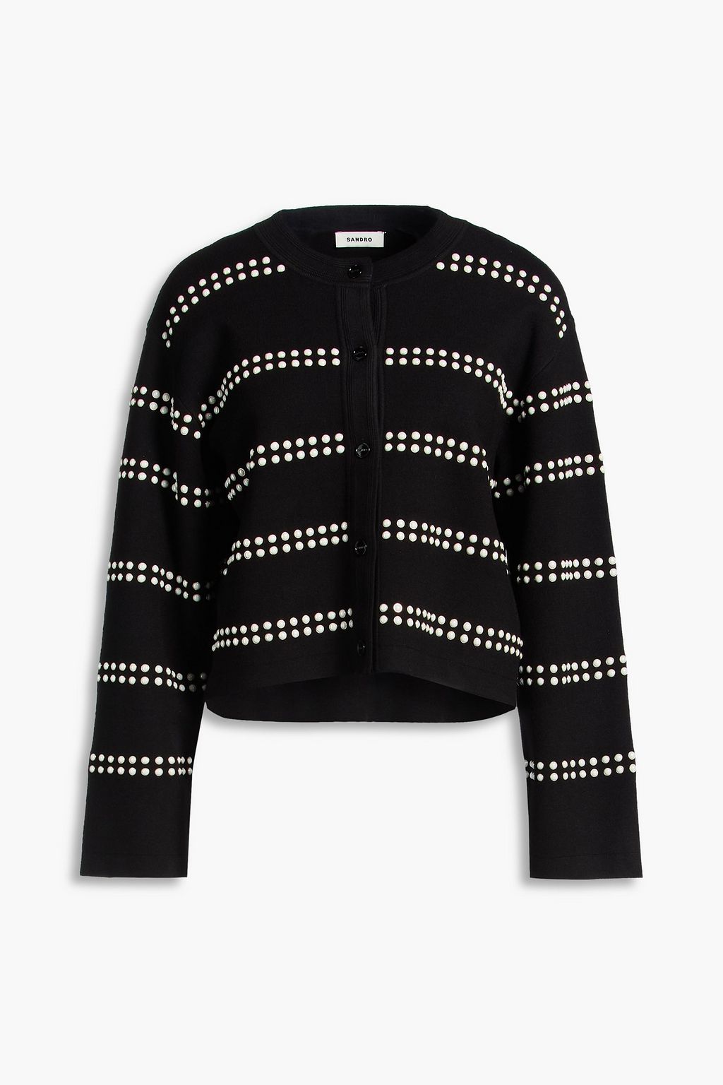 SANDRO Faux pearl-embellished stretch-knit cardigan